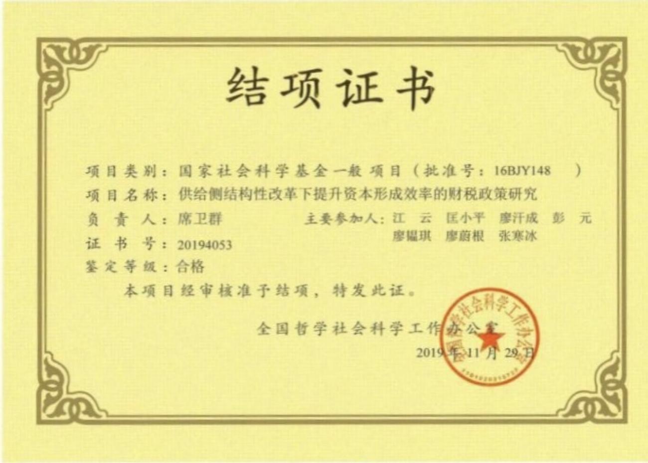 供给侧结构性改革下提升资本形成效率的财税政策研究——2016年国家社科基金一般项目