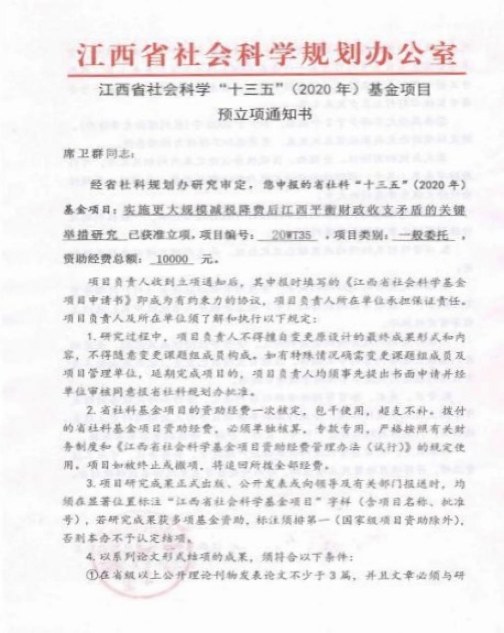 实施更大规模减税降费后江西平衡财政支出矛盾的关键举措研究 ——2020年江西省社会科学基金项目